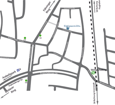 Föhringer Ring bei Ausfahrt Johanneskirchen verlassen, links abbiegen auf Johanneskirchnerstraße, nach ca. 1km rechts abbiegen auf Freischützstraße, nach ca. 850m links in Flaschenträgerstraße einbiegen, gleich rechts abbiegen und anschließend links in Lentnerweg einbiegen.